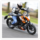 The 125 Duke is the world's first 125 cc motorbike to offer ABS - thus making the first steps into motorised mobility even safer than ever. The refined four-stroke single cylinder with fuel injection and six-speed transmission provides decent propulsion and the low fuel consumption ensures a reasonable level of economy.